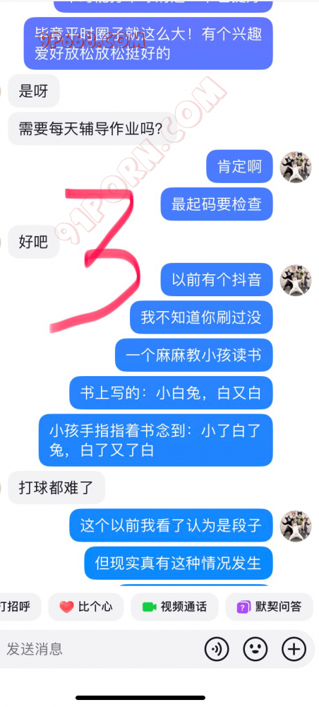 后来加了微信。可能那会稍微清醒了点!有点后悔了!但聊着聊着又自己发骚了!那天其实我有点忙的!她总以为我不理她!最后自己用手扣高潮了!水确实多!流了一地的水!听见她的淫水滴答滴答的滴下来!确实是个骚货!但是呢第二天估计进入了佛系状态!觉得对不起她老公!就把我拉黑了!这给我整得!我以为就到此结束了!没有后续了!谁知道晚上她又自己把我拉回来了!又是一顿发骚!很想和我文爱!那时候已经兜兜转转拉黑我好几回了!我慢慢也失去了兴趣!昨晚又找我聊!我故意为难她。后来又给我拉黑了!也无所谓了!白天给我拉黑!晚上想要了又给我拉回来!都说男的拔吊无情!女人干起这类事也是不遑多让!其实中间还有其他聊天的!我就截了一小段发出来了!其他的就不发了!这帖子算闭环了!各位江湖再见!