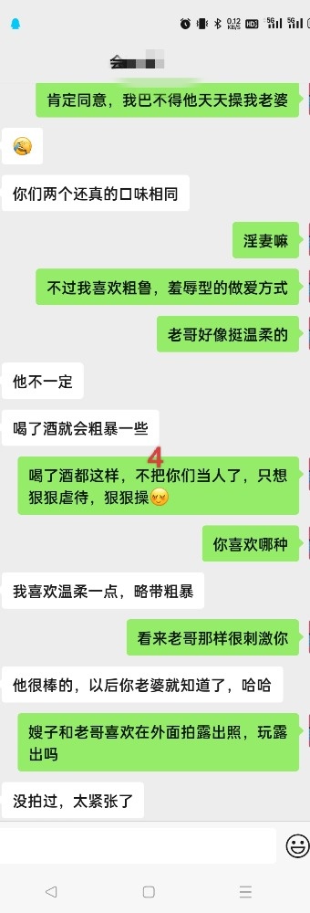 ps:男扮女勿加,会有语音认证,别尝试。照例发几张截图,这个人妻开发到交换了,记得一开始聊天还那么腼腆,现在却在她老公面前给别人狠狠操过,因为都是视频,照片就不上传了,各位淫妻同道自己想象 .