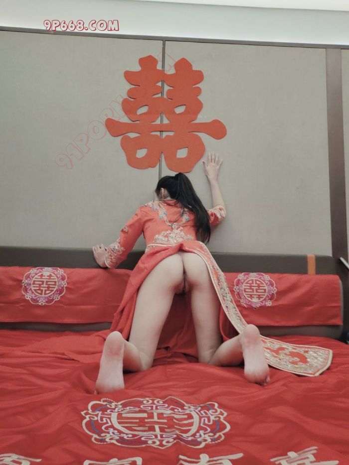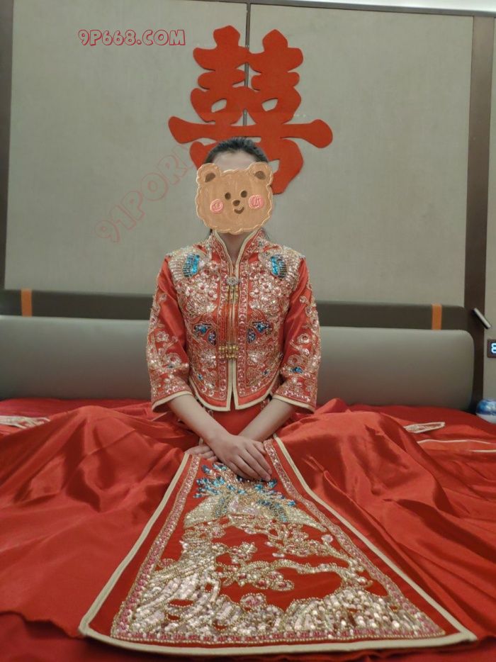 雪白的皮肤紧贴红色秀禾,前凸后翘成熟中透露着性感风骚。