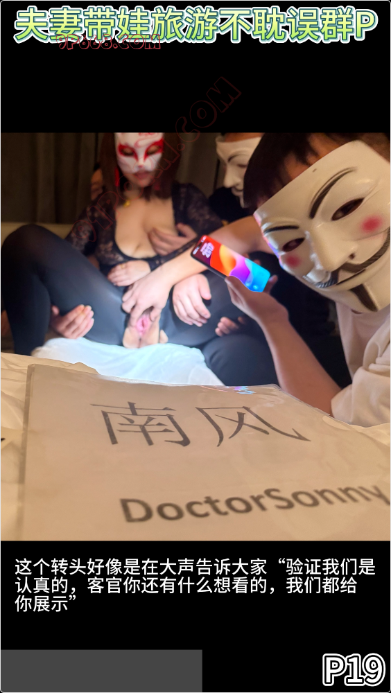 老公一直发信息催我,直到看到这个照片,语气就变了,变得沉默了信息少了,并且叮嘱道“你们要戴套呀,不要内射呀”。绿帽、淫妻爱好者最常幻想的时刻就是这个样子-老婆被一群男人(一群陌生男人)疯狂打桩,全身心的被男人们贪婪地玩弄。